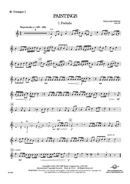"Paintings - Bb Trumpet 2" Sheet Music by William Owens