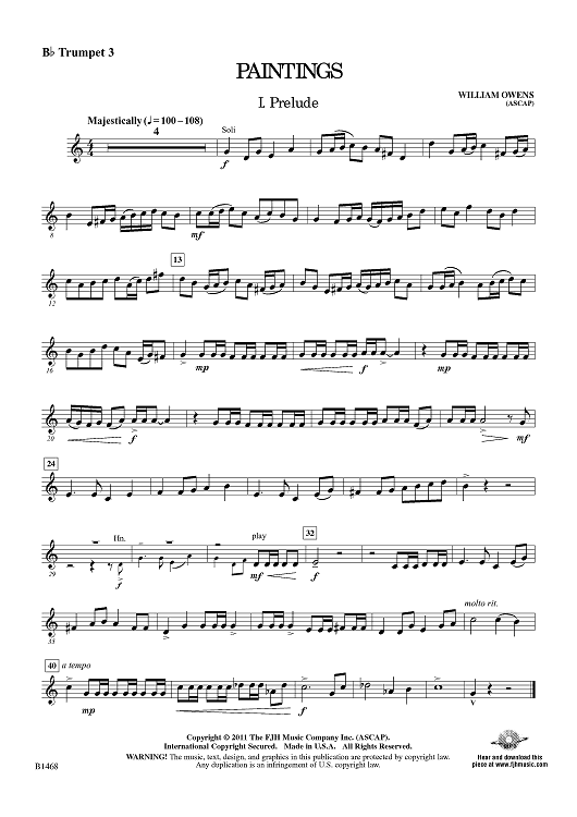 "Paintings - Bb Trumpet 3" Sheet Music by William Owens