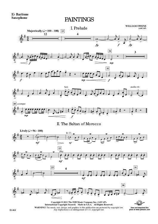 "Paintings - Eb Baritone Sax" Sheet Music by William Owens