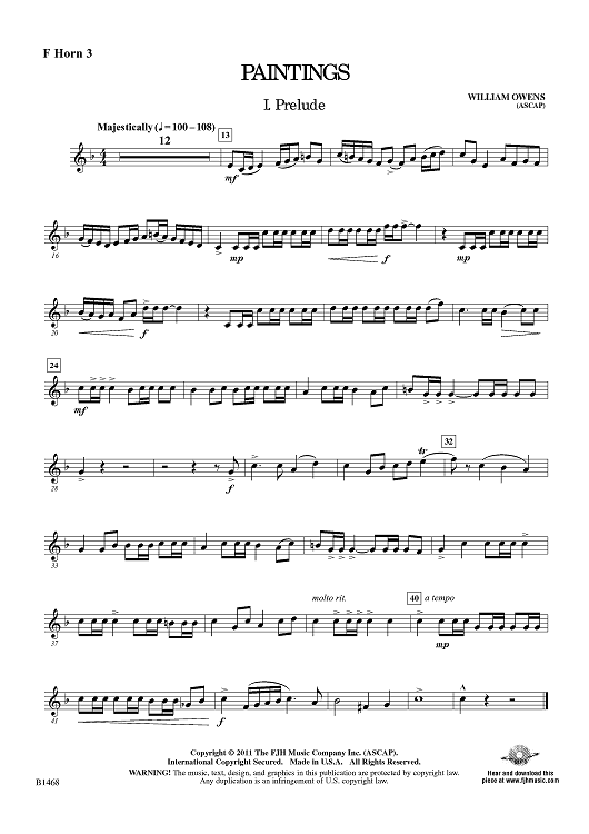 Digital Sheet Music for Paintings - F Horn 3 by William Owens scored for Concert Band; id:425605