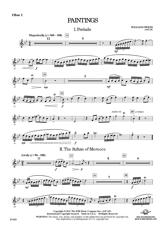 "Paintings - Oboe 1" Sheet Music by William Owens