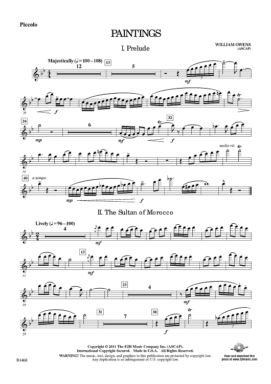 "Paintings - Piccolo" Sheet Music by William Owens