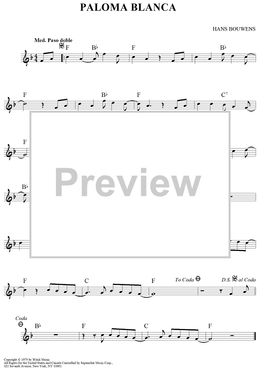 Digital Sheet Music for Paloma Blanca by Hans Bouwens scored for Lead Sheet; id:456685