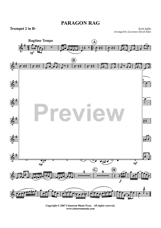 "Paragon Rag - Trumpet 2 in Bb" Sheet Music by Scott Joplin