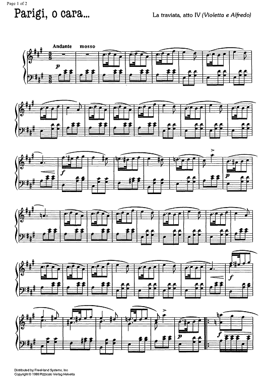 "Parigi o cara from La Traviata" Sheet Music by Giuseppe Verdi