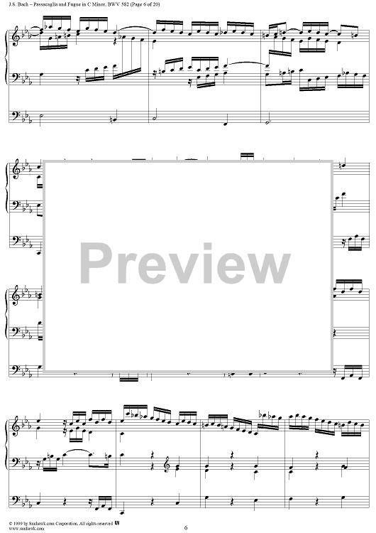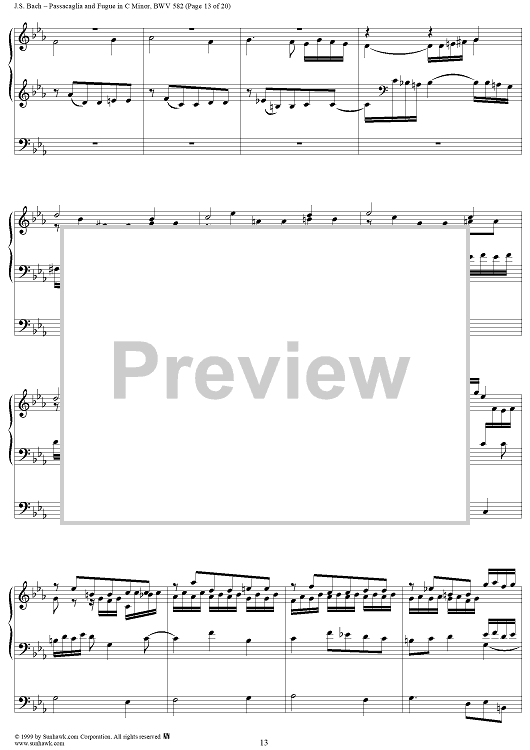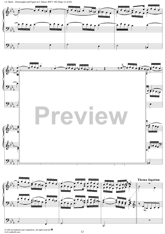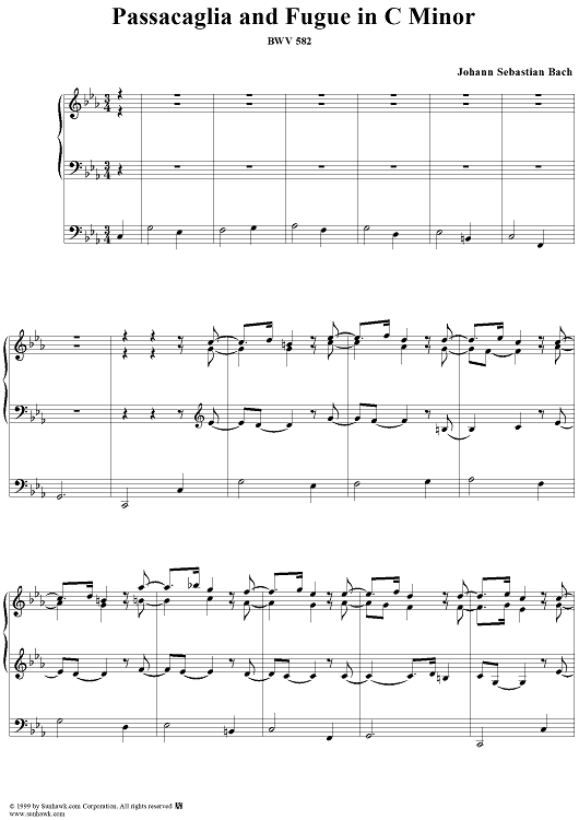 Digital Sheet Music for Passacaglia and Fugue in C Minor, BWV 582 by Johann Sebastian Bach scored for Organ Solo; id:118338