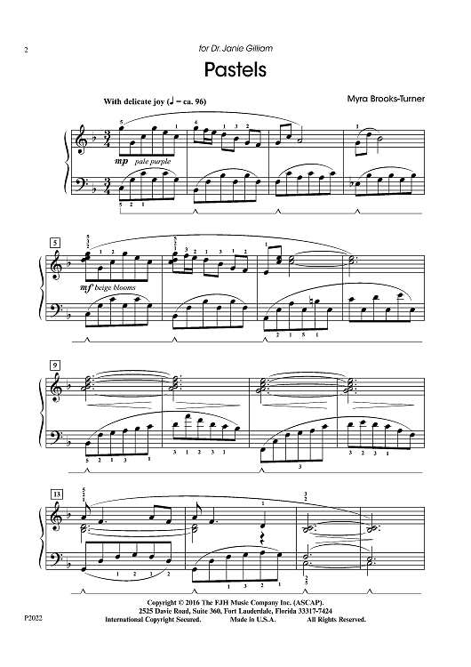 "Pastels" Sheet Music by Myra Brooks-Turner