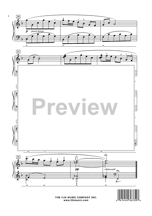 You may come up with your own favorite colors as you explore the timbres in this beautiful solo. A lyrical melody in F major is supported by arpeggiated chords in Section A and blocked chords in Section B. This piece calls for artistic use of pedal and reading inner ledger lines.