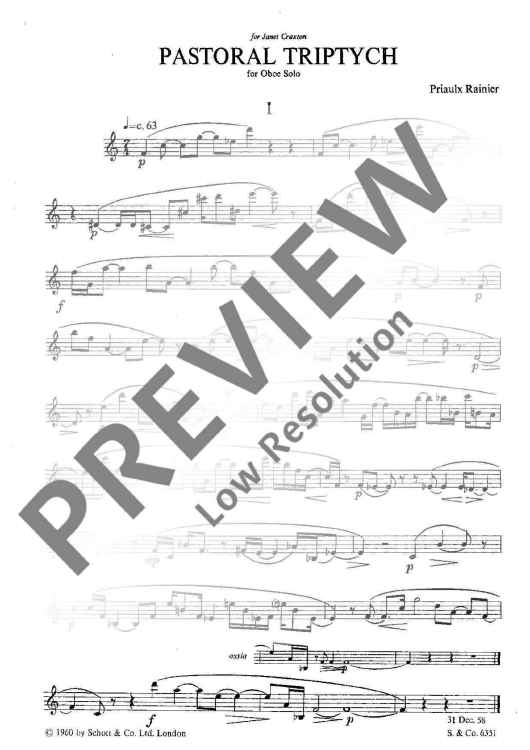Digital Sheet Music for Pastoral Triptych by Priaulx Rainier scored for Oboe; id:474209