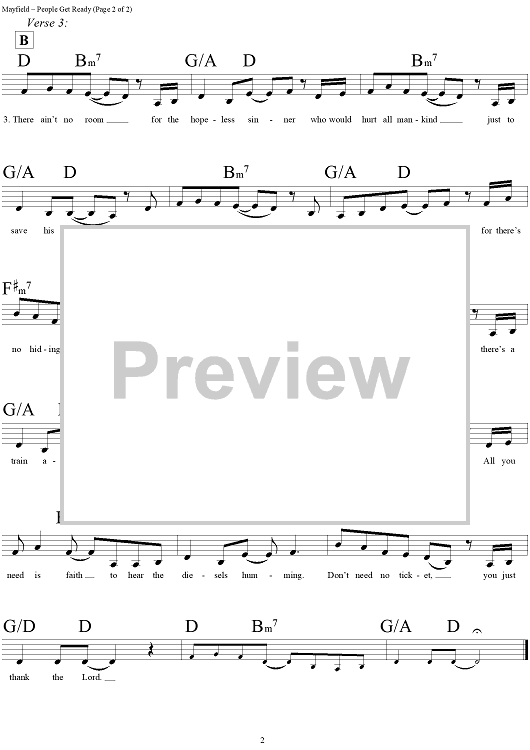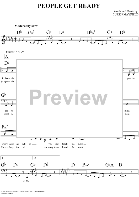 Digital Sheet Music for People Get Ready by Curtis Mayfield scored for Lead Sheet; id:291586