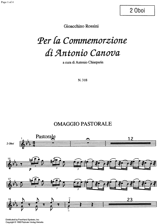 "Per la Commermorazione di Antonia Canova [set of parts] - Oboes 1 & 2" Sheet Music by Gioachino Rossini