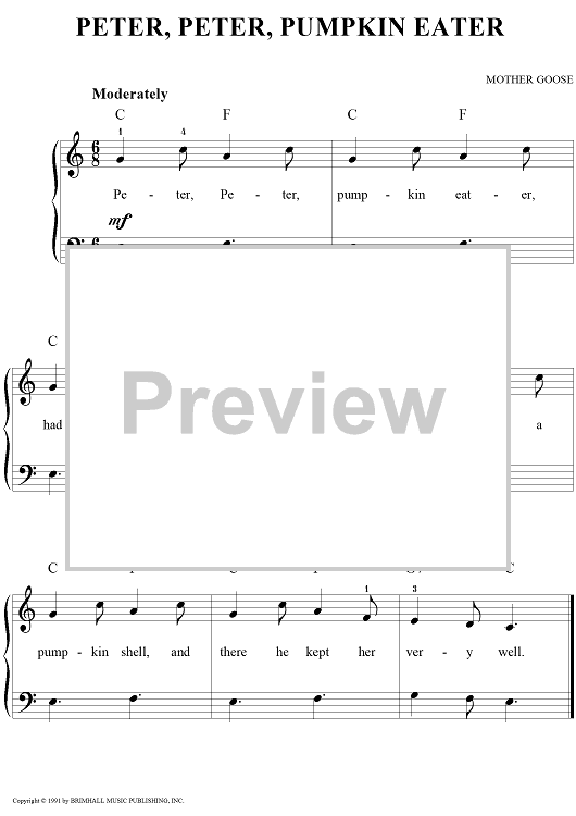 Digital Sheet Music for Peter, Peter, Pumpkin Eater by John Brimhall, Mother Goose scored for Easy Piano/Vocal; id:252461