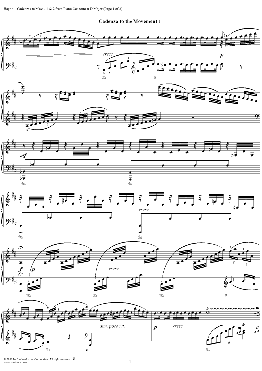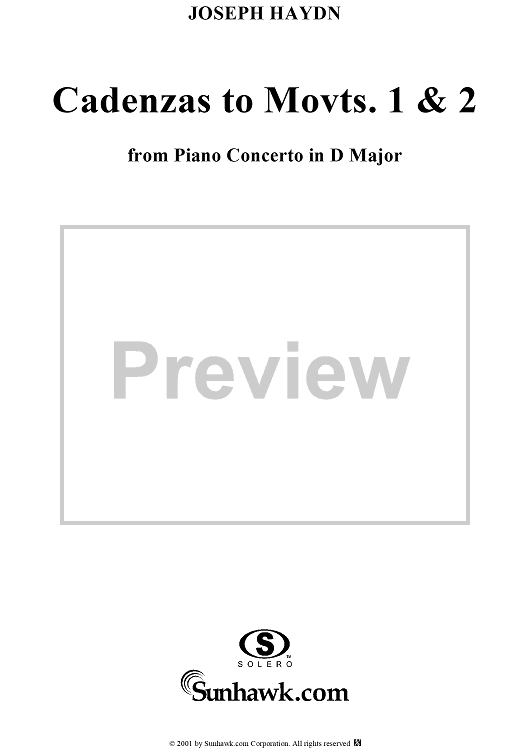 "Piano Concerto in D Major: Cadenzas to Movts. 1 & 2 - Piano" Sheet Music by Franz Joseph Haydn