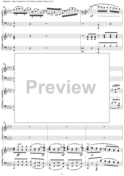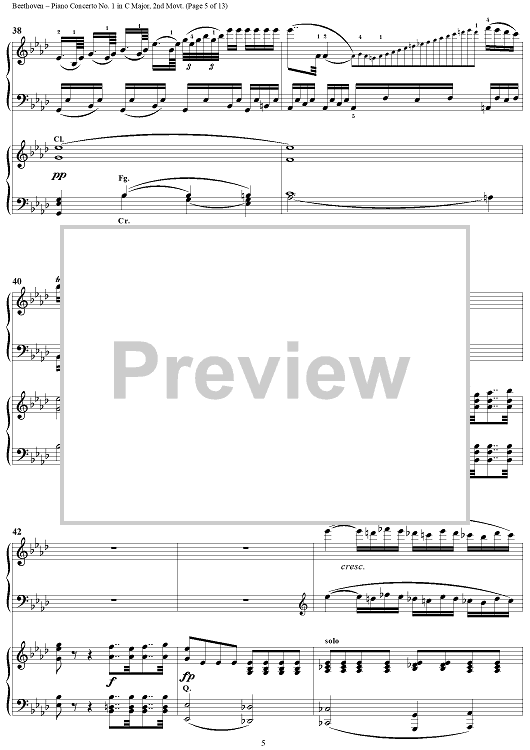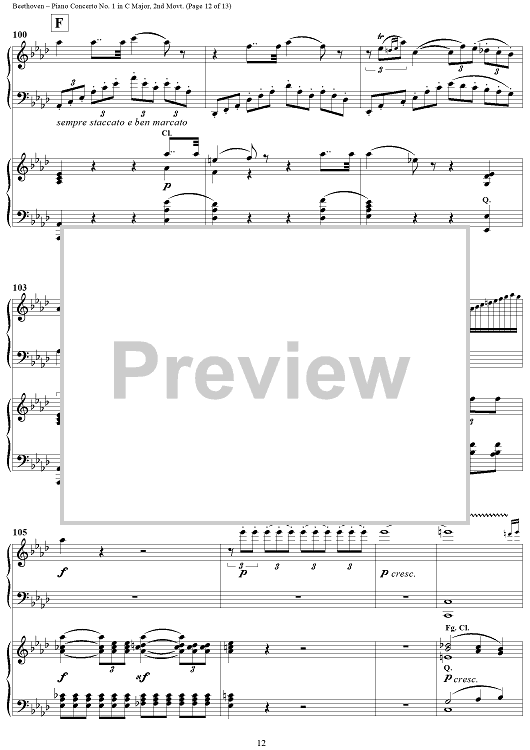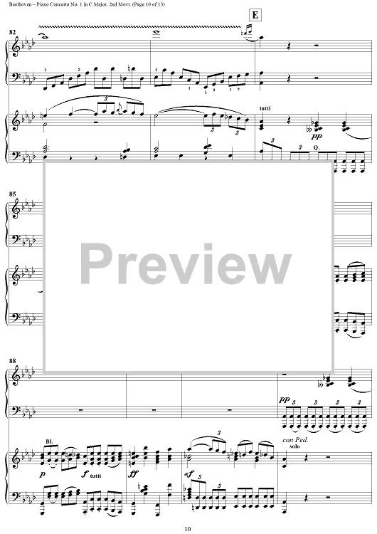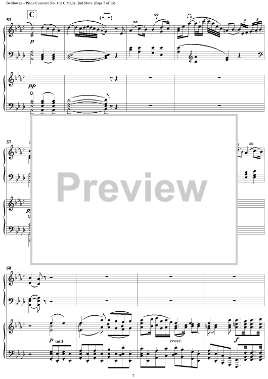 "Piano Concerto No. 1 in C Major, Op. 15, Mvmt. 2" Sheet Music by Ludwig van Beethoven