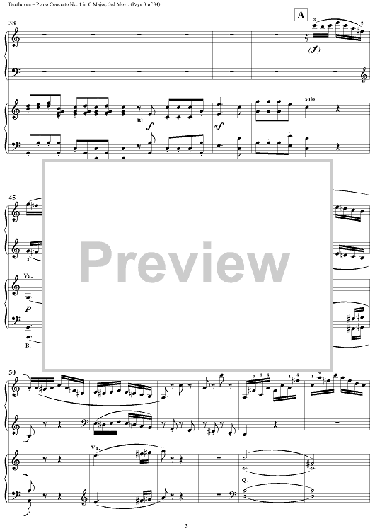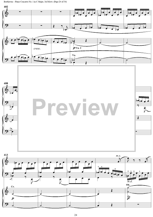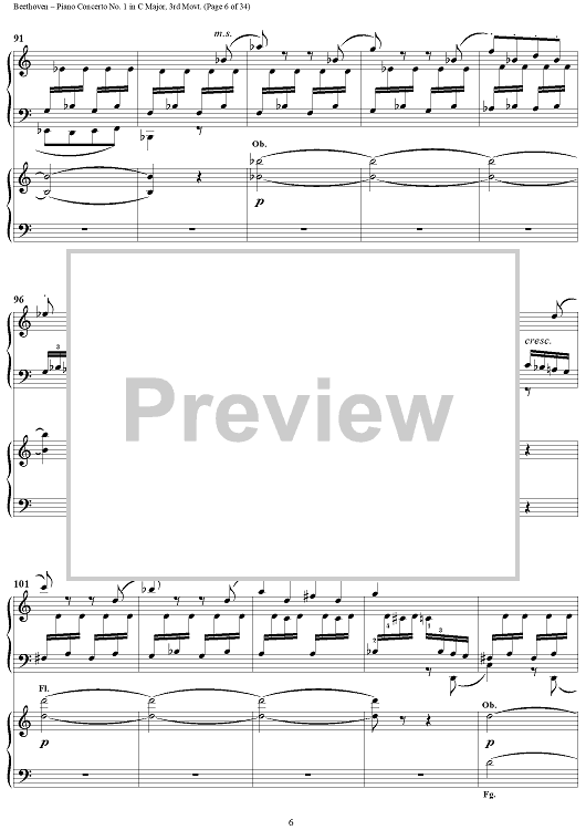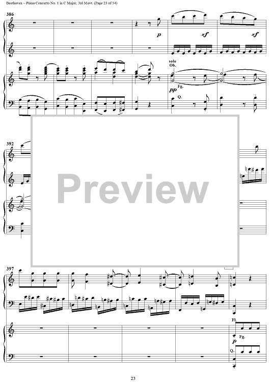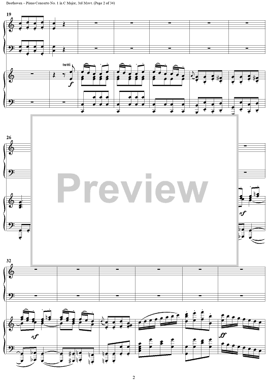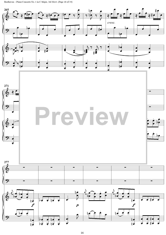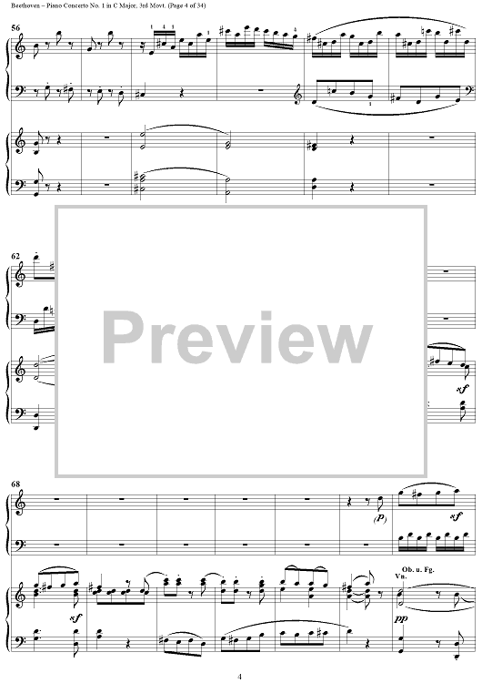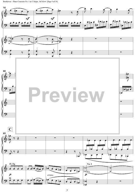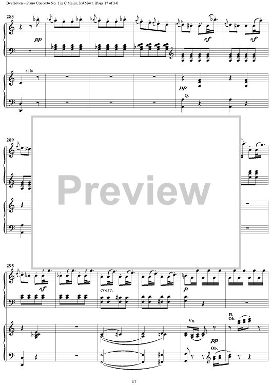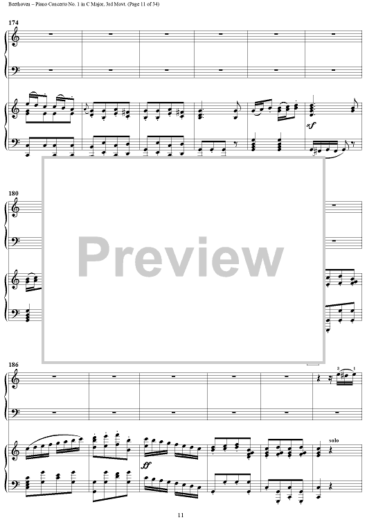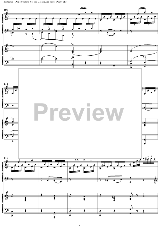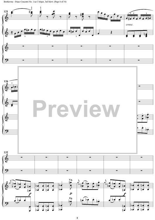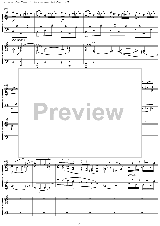 "Piano Concerto No. 1 in C Major, Op. 15, Mvmt. 3" Sheet Music by Ludwig van Beethoven