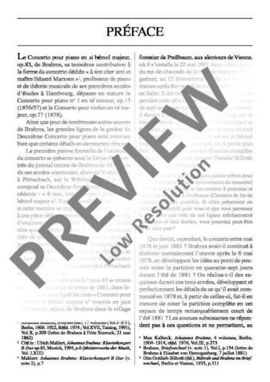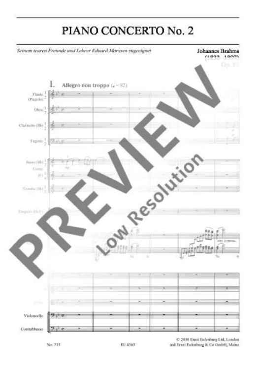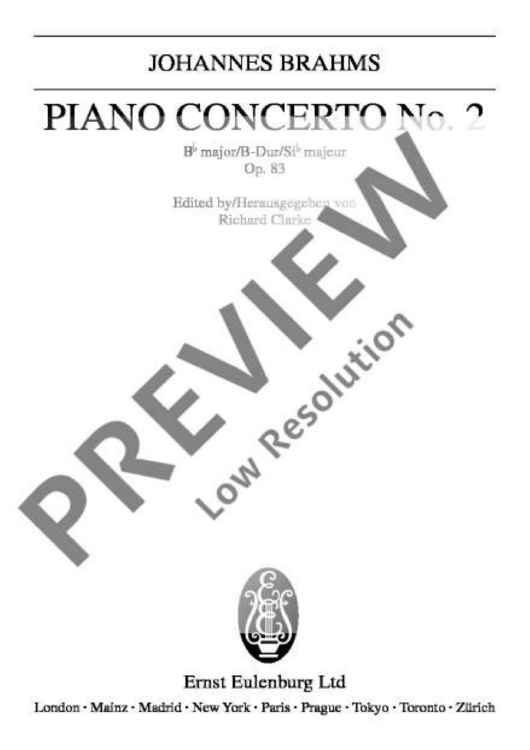 "Piano Concerto No. 2 in B flat major - Full Score" Sheet Music by Johannes Brahms