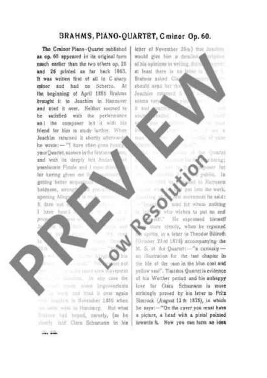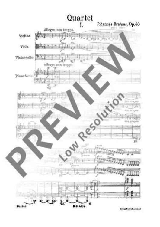 "Piano Quartet C minor - Full Score" Sheet Music by Johannes Brahms