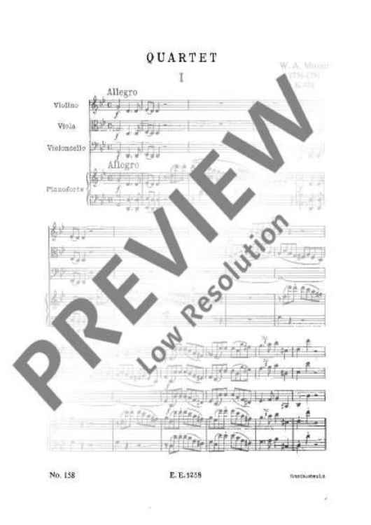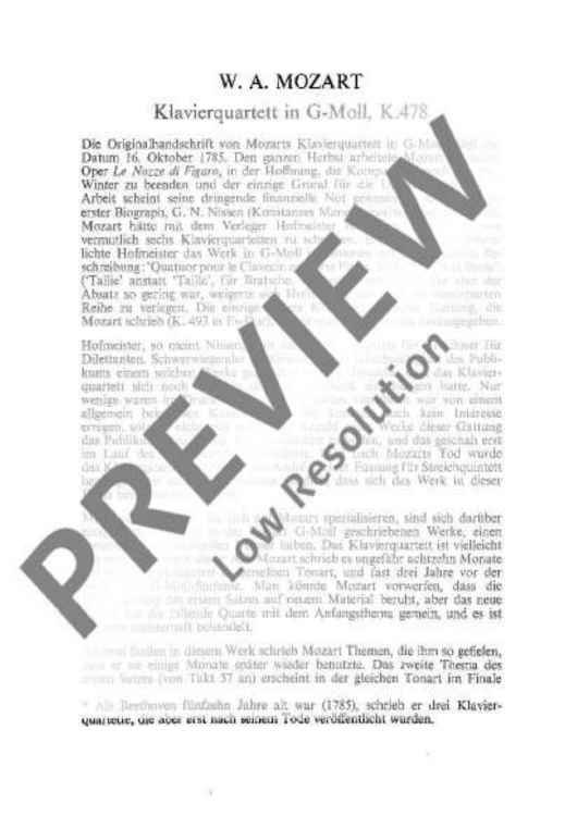 "Piano Quartet G minor - Full Score" Sheet Music by Wolfgang Amadeus Mozart