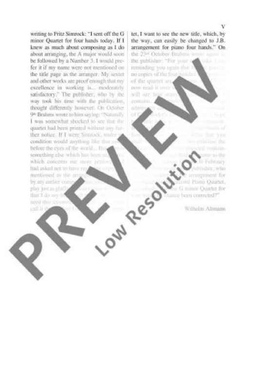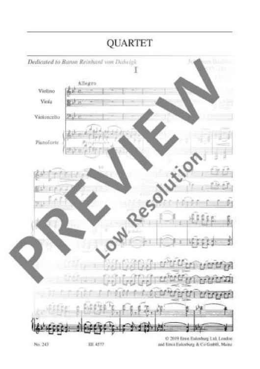 "Piano Quartet G minor - Full Score" Sheet Music by Johannes Brahms