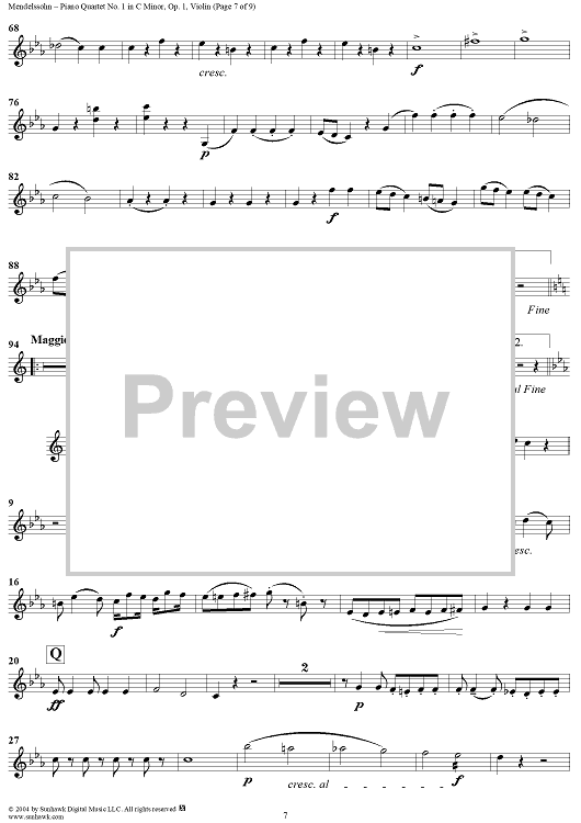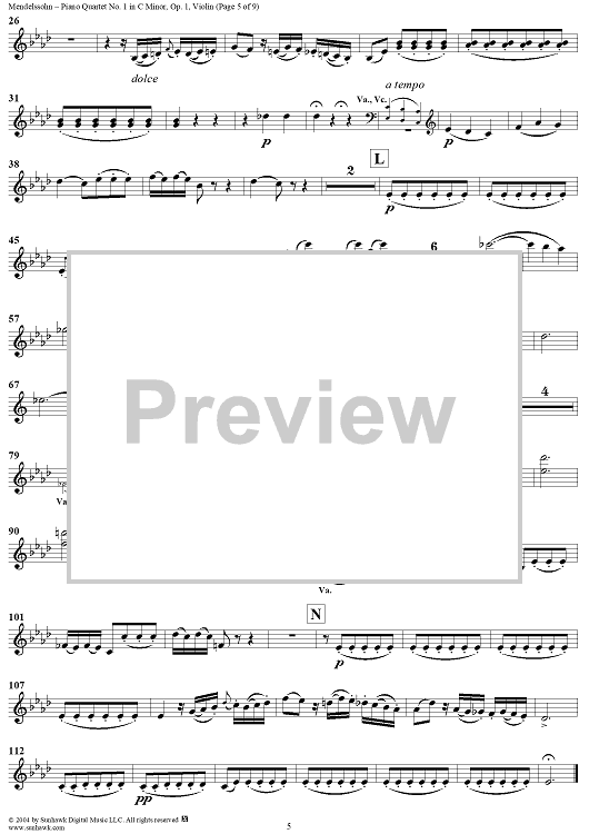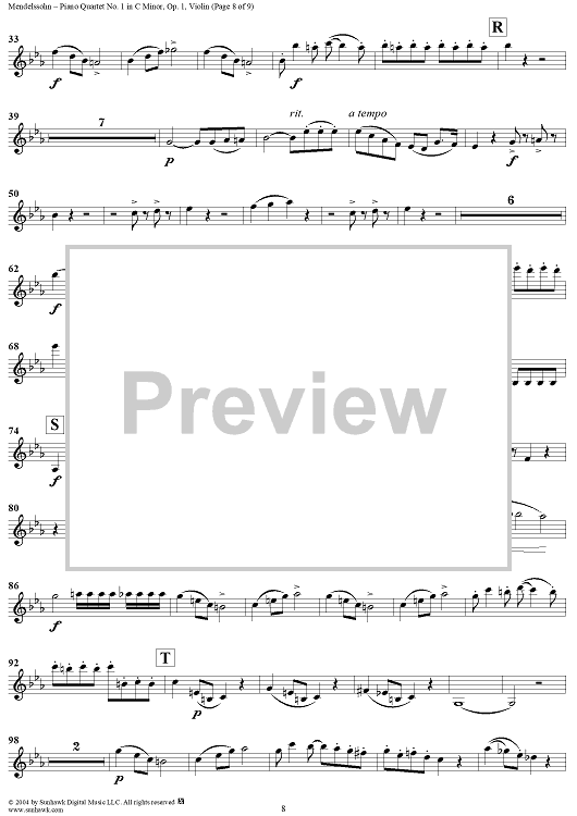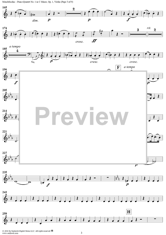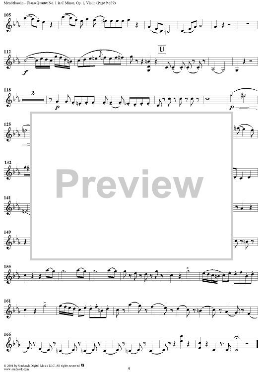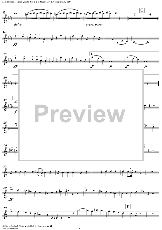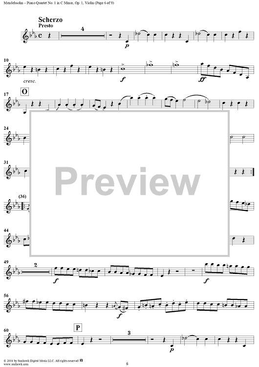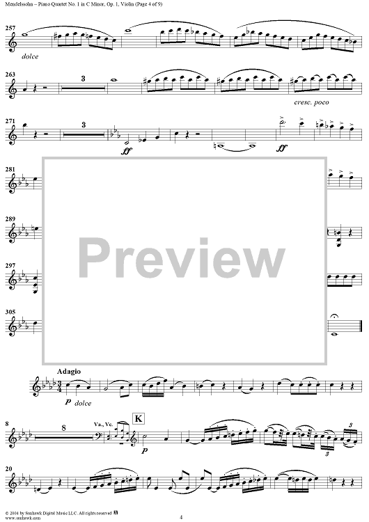 "Piano Quartet No. 1 in C Minor, Op. 1 - Violin" Sheet Music by Felix Mendelssohn