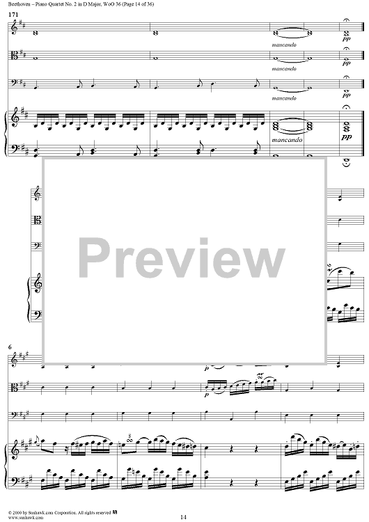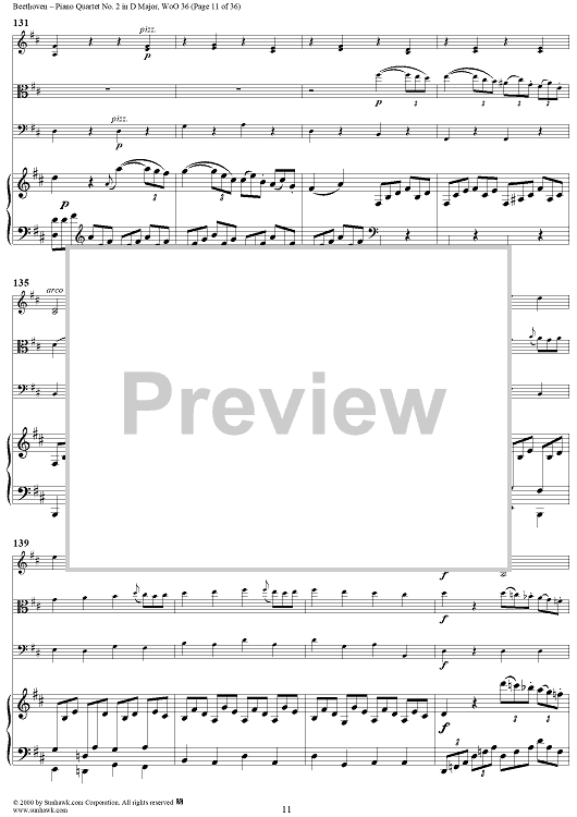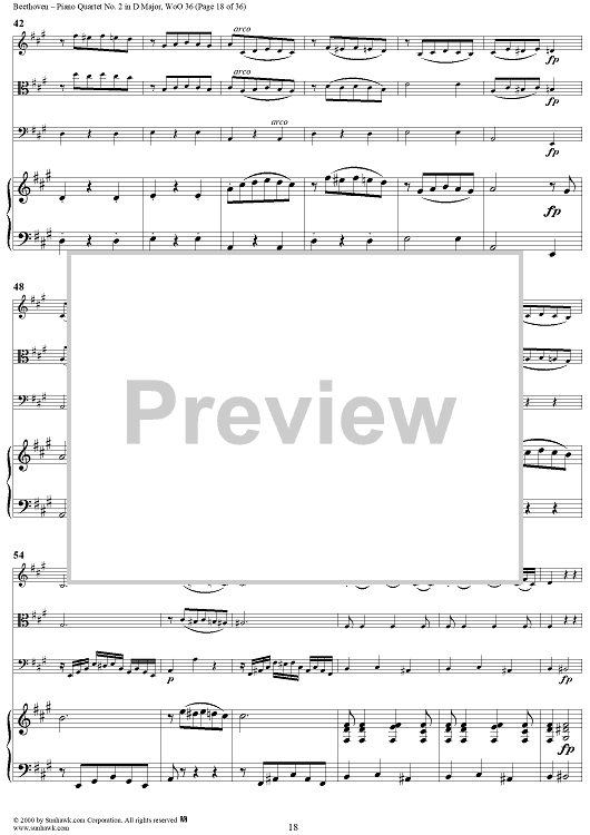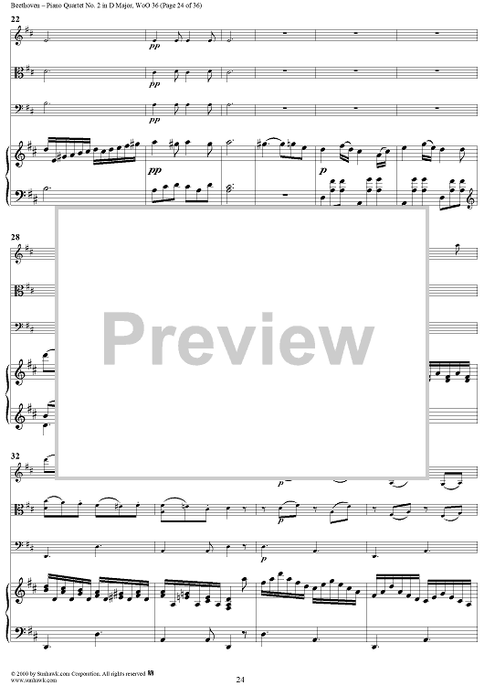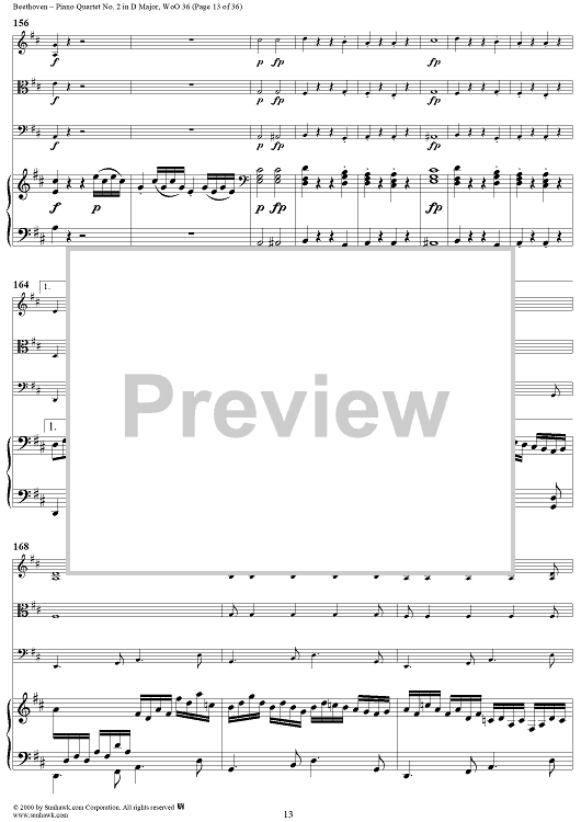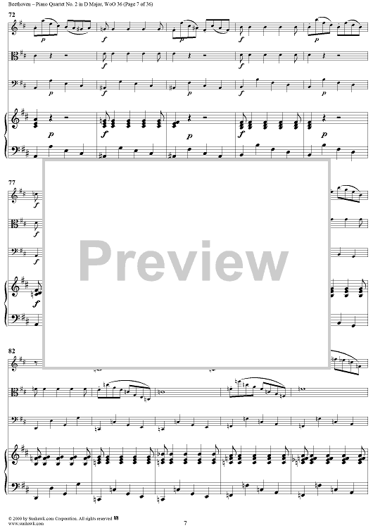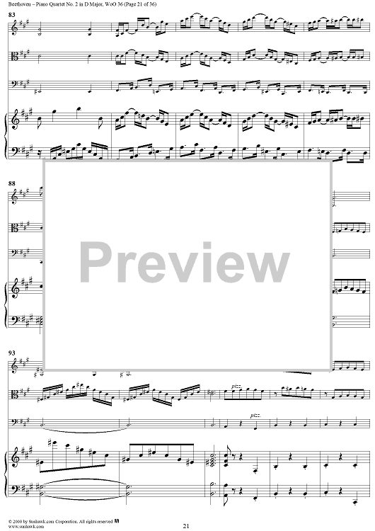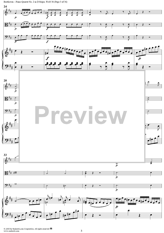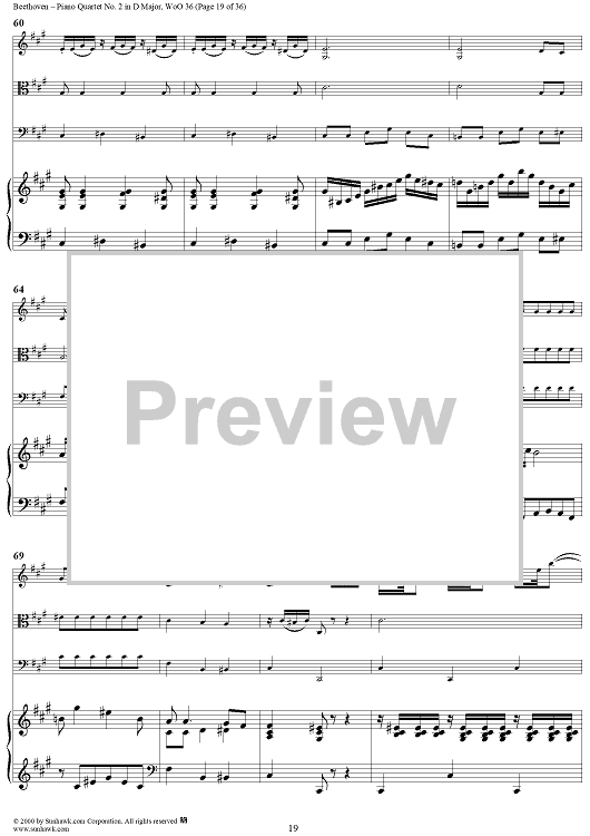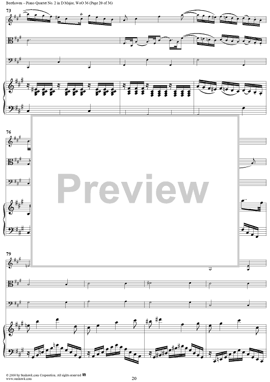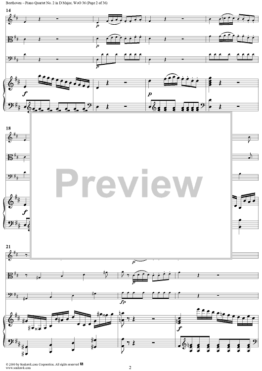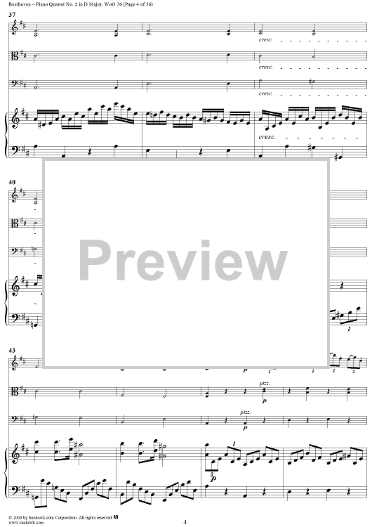 Digital Sheet Music for Piano Quartet No. 2 in D Major, WoO 36 - Piano Score by Ludwig van Beethoven scored for Piano Quartet; id:275788