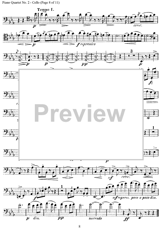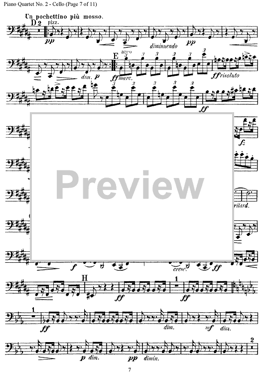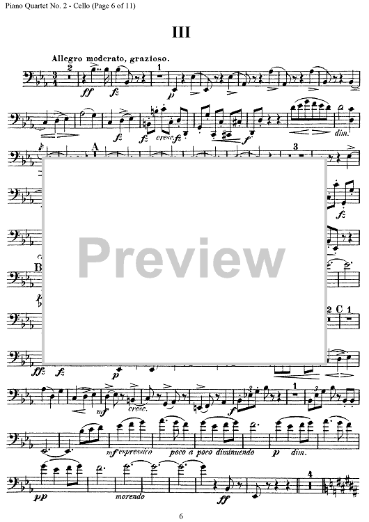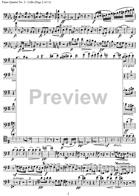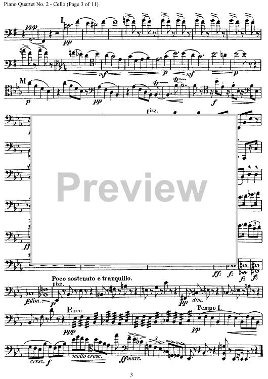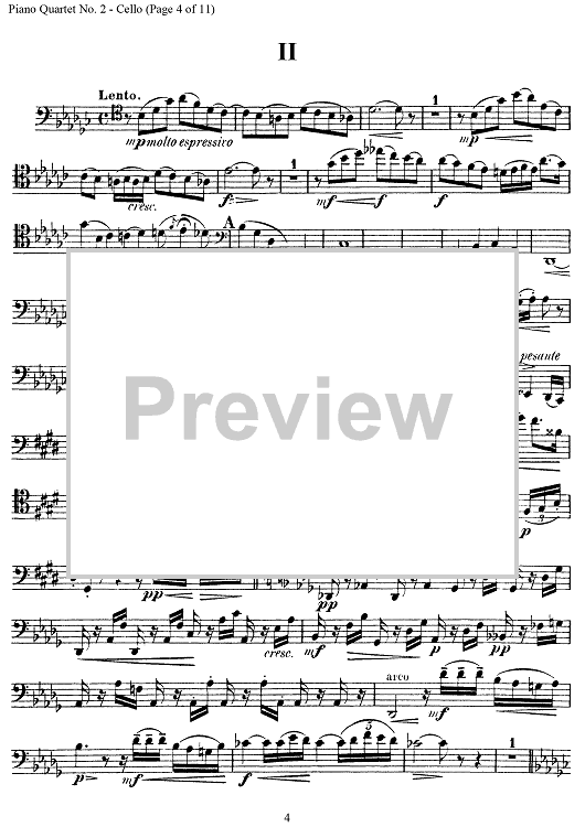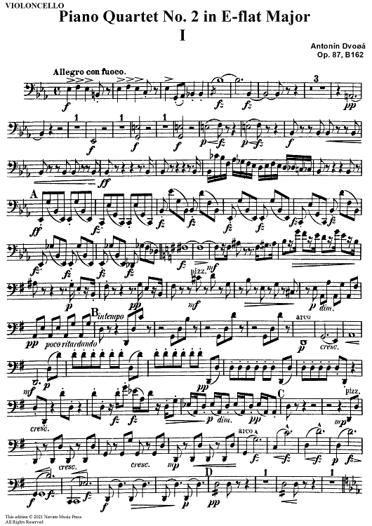 Digital Sheet Music for Piano Quartet No. 2 in E-flat Major, Op. 87 - Cello by Antonín Dvorák scored for Piano Quartet; id:303467