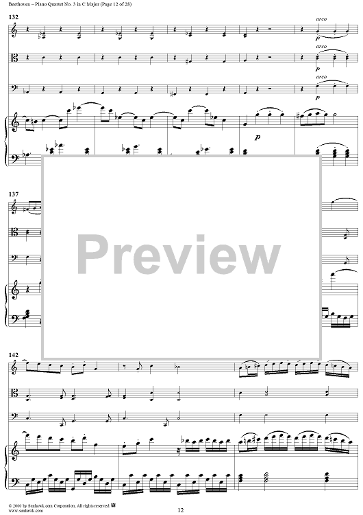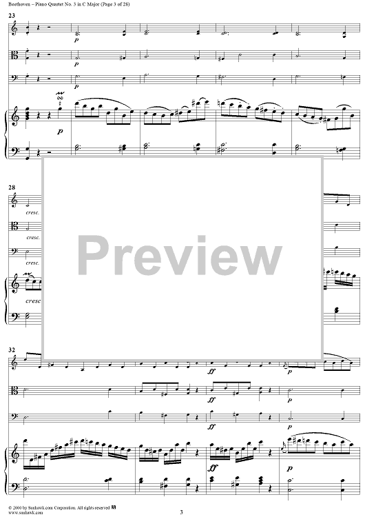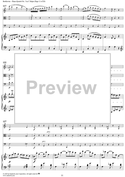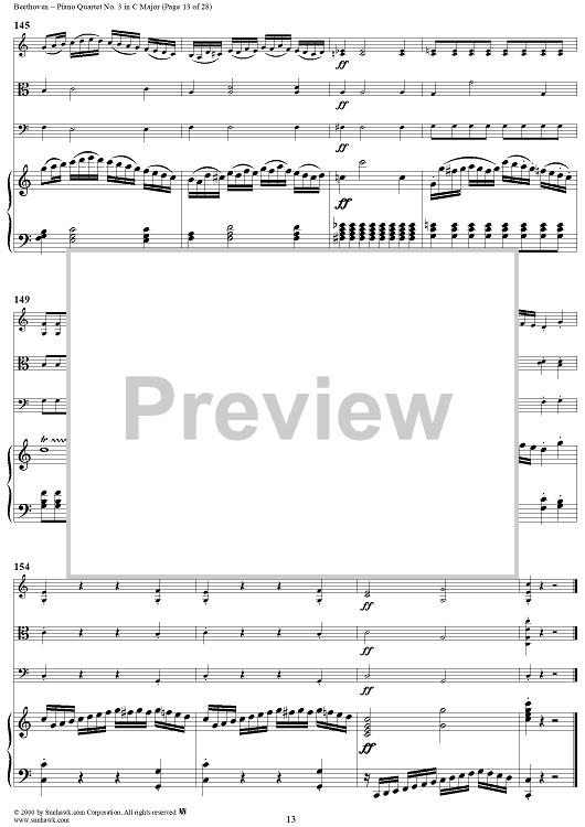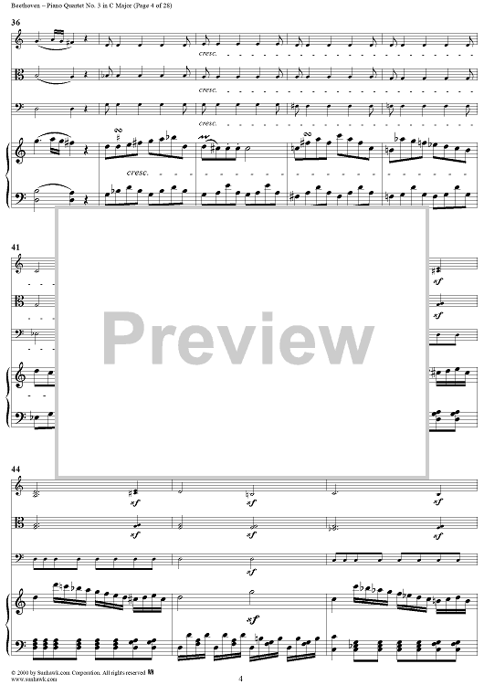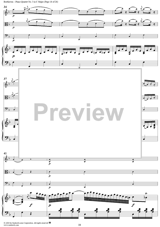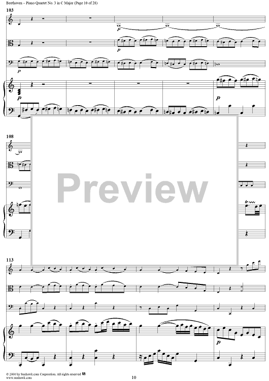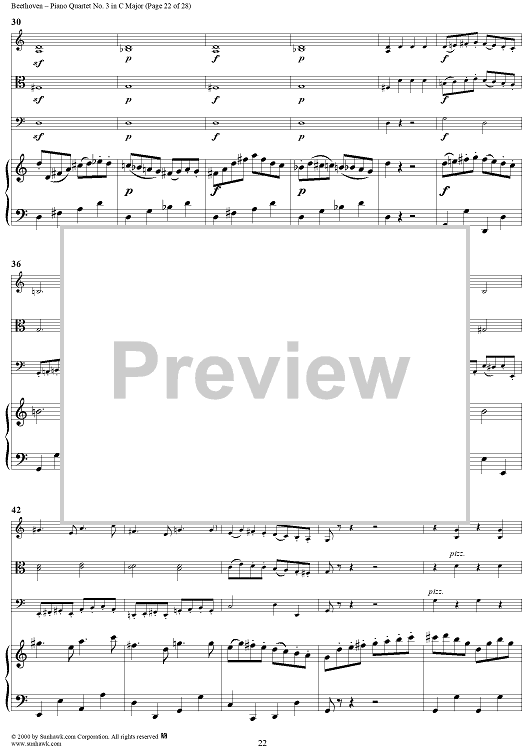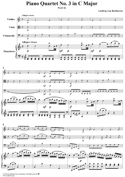 Digital Sheet Music for Piano Quartet No. 3 in C Major, WoO 36 - Piano Score by Ludwig van Beethoven scored for Piano Quartet; id:275787