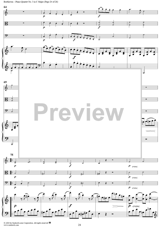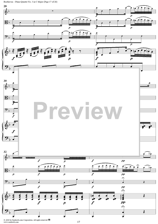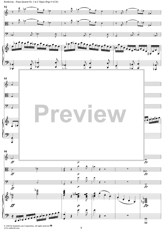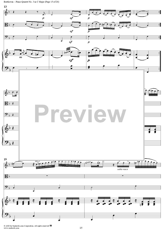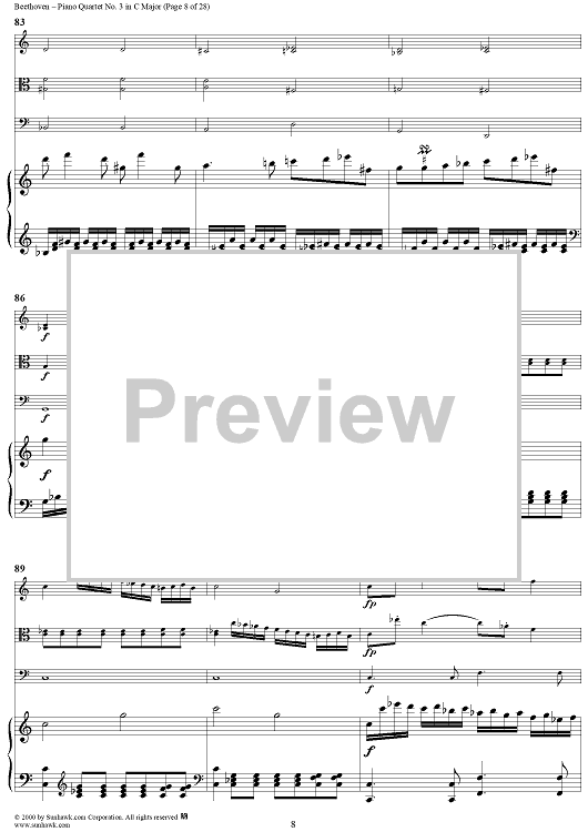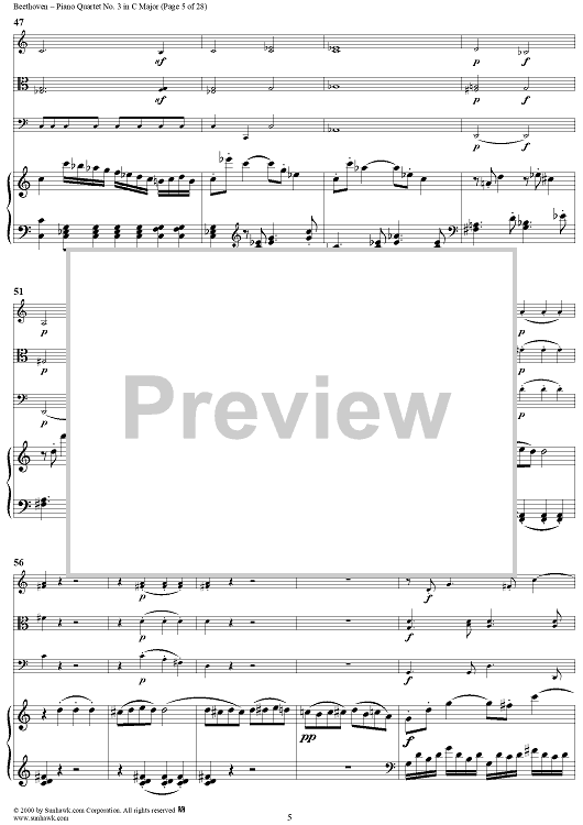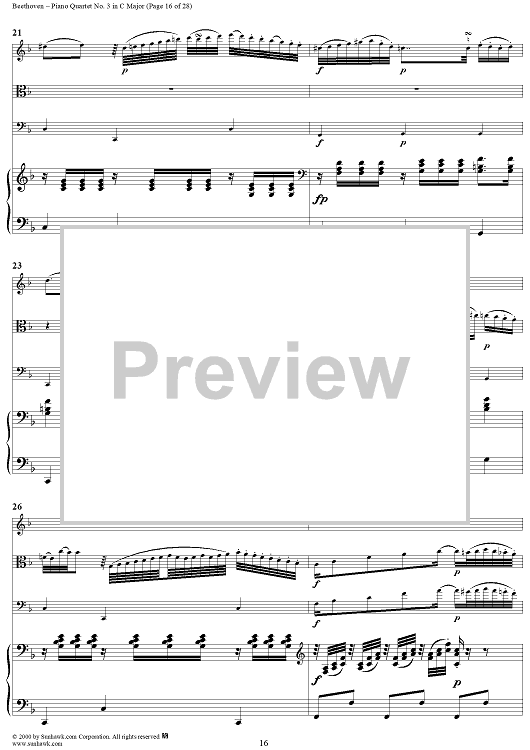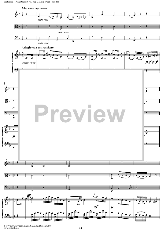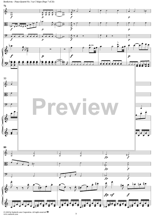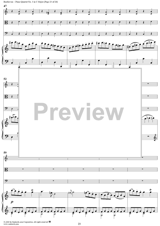 Digital Sheet Music for Piano Quartet No. 3 in C Major, WoO 36 - Piano Score by Ludwig van Beethoven scored for Piano Quartet; id:275787