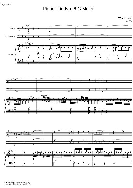Digital Sheet Music for Piano Trio No. 6 G Major KV564 - Score by Wolfgang Amadeus Mozart scored for PianoTrio; id:333340