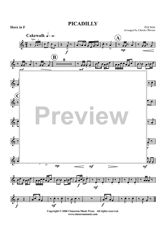 "Piccadilly (1904) - Horn in F" Sheet Music by Erik Satie