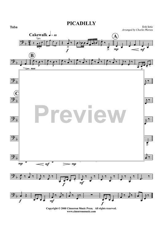 "Piccadilly (1904) - Tuba" Sheet Music by Erik Satie
