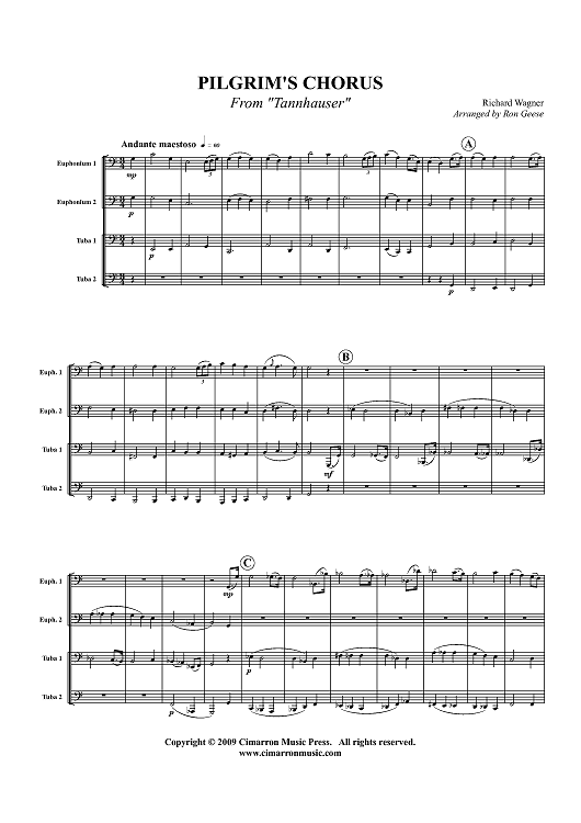 Digital Sheet Music for Pilgrim’s Chorus - Score by Richard Wagner, Ron Geese scored for Tuba Quartet; id:409814