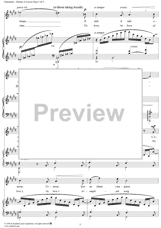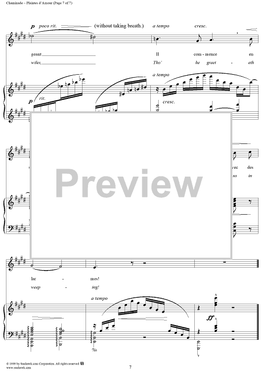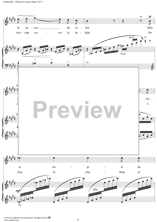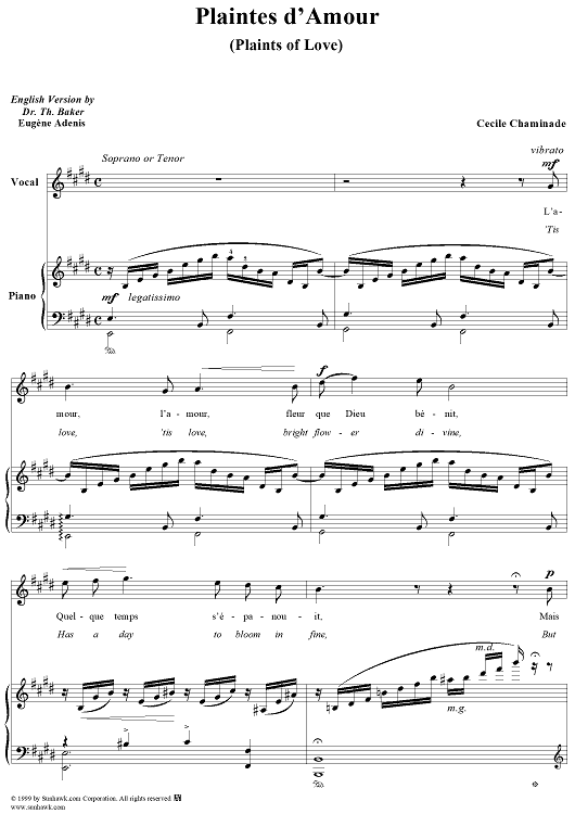 Digital Sheet Music for Plaints of Love (Plaintes d'Amour) by Cécile Chaminade, Eugene Adenis scored for Voice/Piano; id:272963