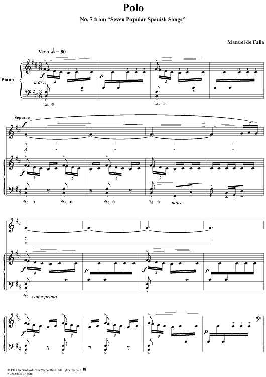 Digital Sheet Music for Polo by Manuel De Falla scored for Piano/Vocal; id:118372