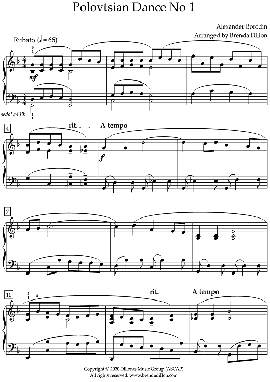 Digital Sheet Music for Polovtsian Dance No 1 by Alexander Borodin, Brenda Dillon scored for Piano; id:469264