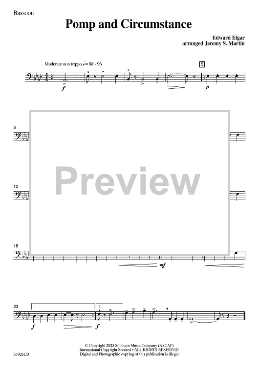 Digital Sheet Music for Pomp and Circumstance (easy) - Bassoon by Edward Elgar, Jeremy S. Martin scored for Concert Band; id:502357