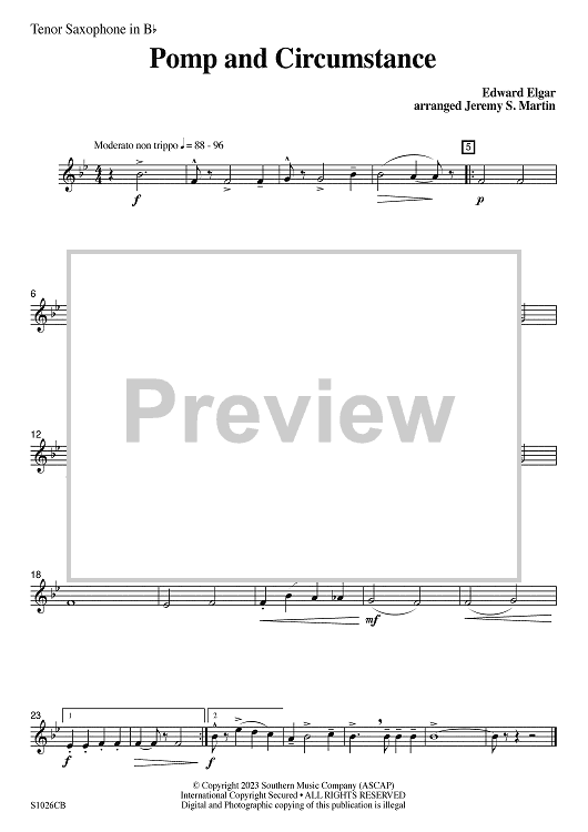 Digital Sheet Music for Pomp and Circumstance (easy) - Bb Tenor Sax by Edward Elgar, Jeremy S. Martin scored for Concert Band; id:502360