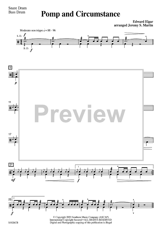 Digital Sheet Music for Pomp and Circumstance (easy) - Snare Drum & Bass Drum by Edward Elgar, Jeremy S. Martin scored for Concert Band; id:502373