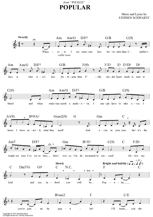 "Popular" Sheet Music by Stephen Schwartz