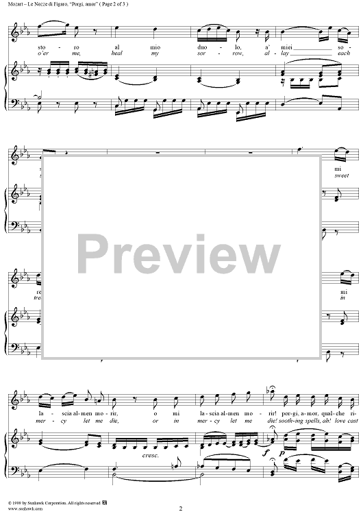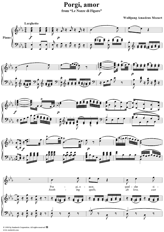 Digital Sheet Music for Porgi, amor - From "Le Nozze di Figaro" by Wolfgang Amadeus Mozart scored for Voice/Piano; id:254382