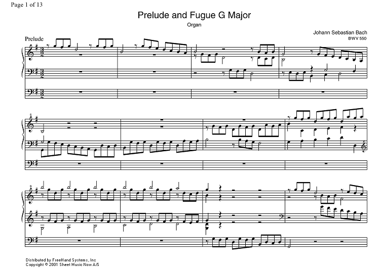 Digital Sheet Music for Prelude and Fugue G Major BWV 550 by Johann Sebastian Bach scored for Organ Solo; id:330945