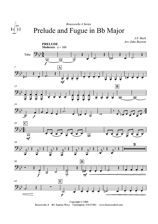 Digital Sheet Music for Prelude and Fugue in B-flat Major - Tuba by John Beyrent, Johann Sebastian Bach scored for Brass Ensemble/Timpani; id:319764