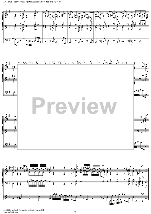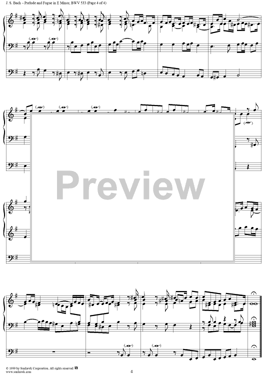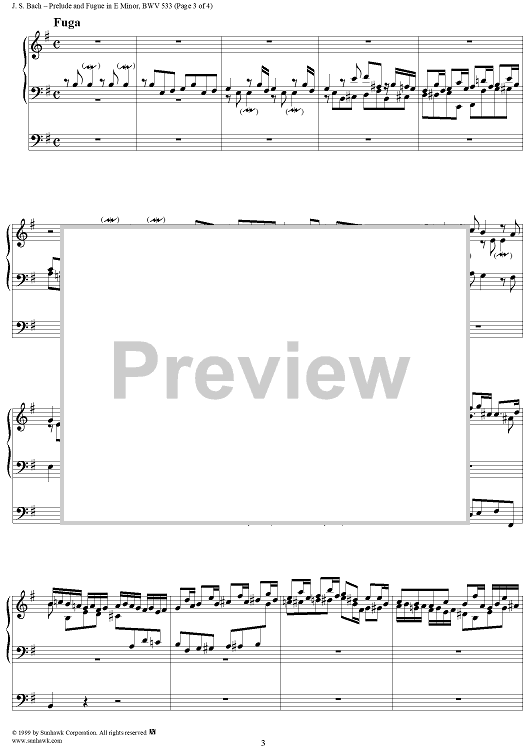Digital Sheet Music for Prelude and Fugue in E Minor, BWV533 by Johann Sebastian Bach scored for Organ Solo; id:319059