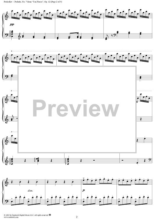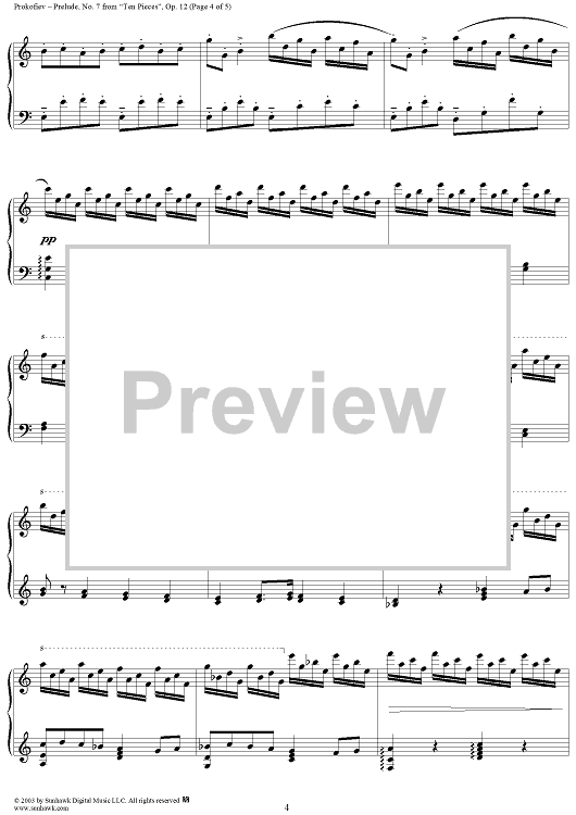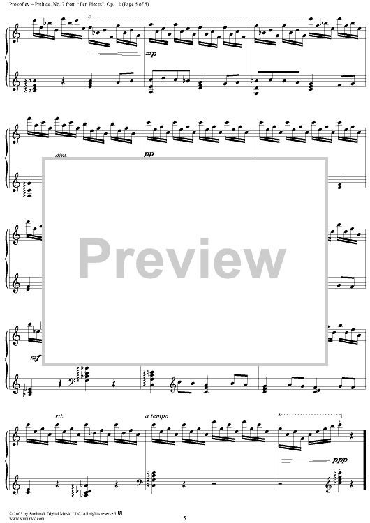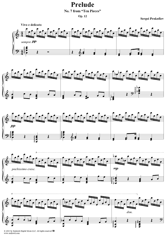 Digital Sheet Music for Prelude, No. 7 from "Ten Pieces", Op. 12 by Sergei Prokofiev scored for Piano Solo; id:295322