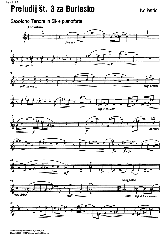 "Preludij st. 3 za Burlesko - B-flat Tenor Saxophone" Sheet Music by Ivo Petric