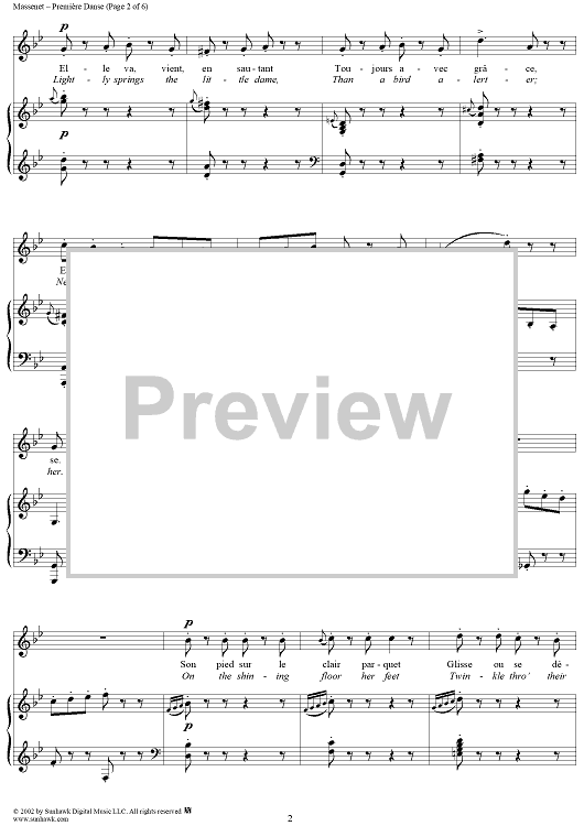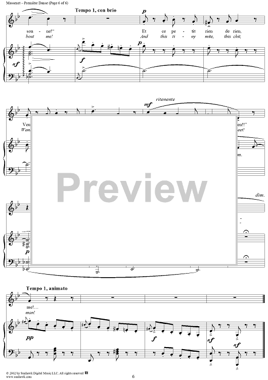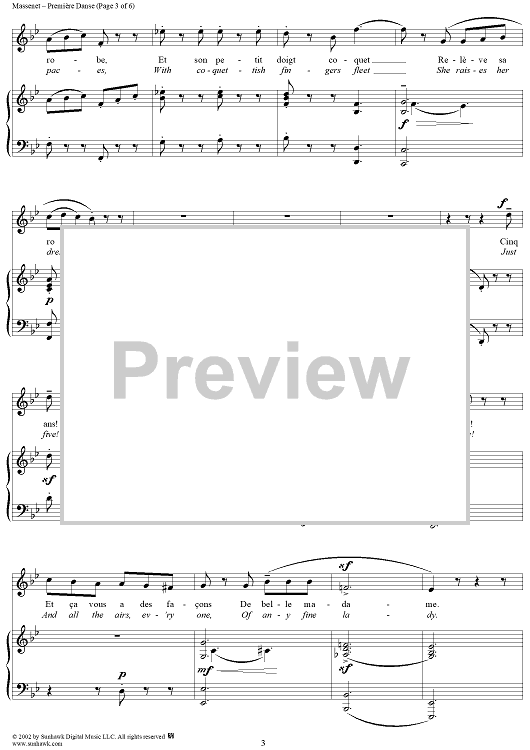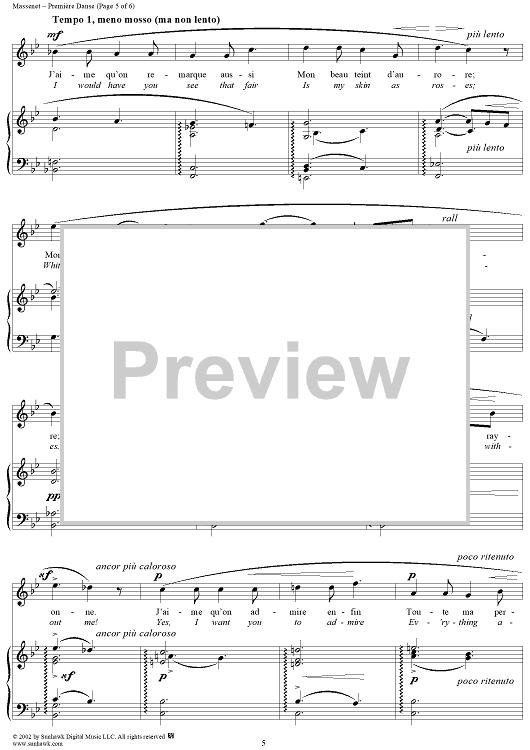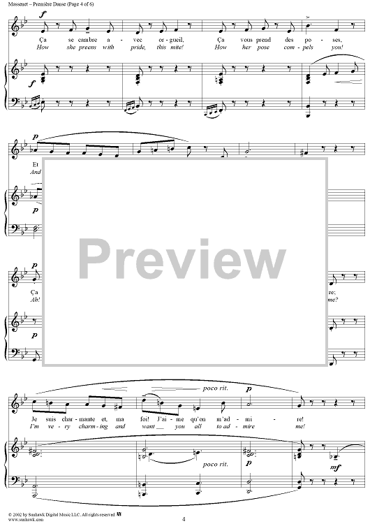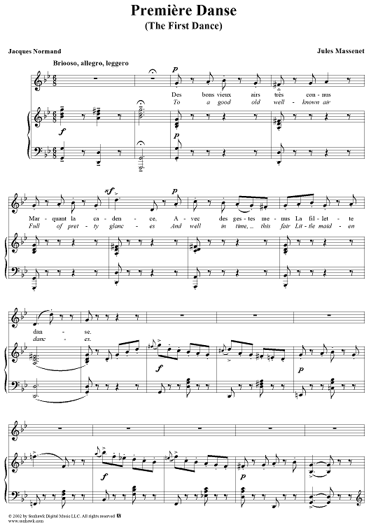 Digital Sheet Music for Première Danse, The First Dance by Jacques Normand, Jules Massenet scored for Voice/Piano; id:252763