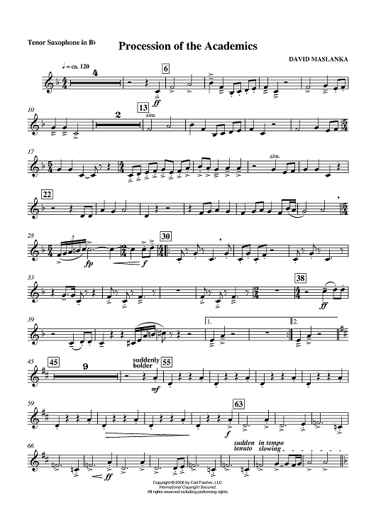 "Procession of the Academics - Tenor Sax" Sheet Music by David Maslanka