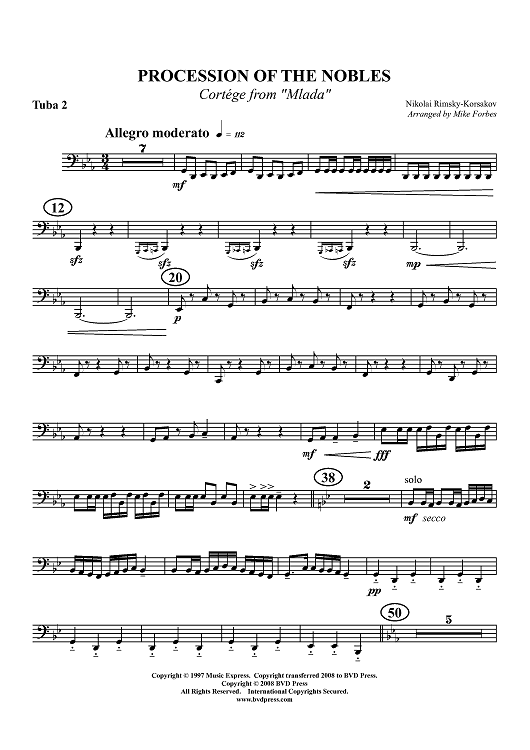 Digital Sheet Music for Procession of the Nobles - Cortege from "Mlada" - Tuba 2 by Mike Forbes, Nikolai Rimsky-Korsakov scored for Tuba Quartet; id:412027