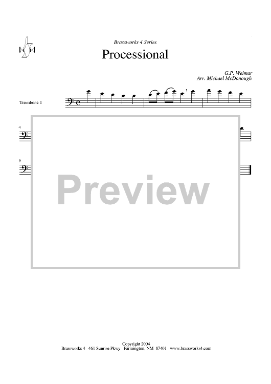Digital Sheet Music for Processional - Trombone 1 by Michael McDonough, G.P. Weimar scored for Trombone Quartet; id:317794