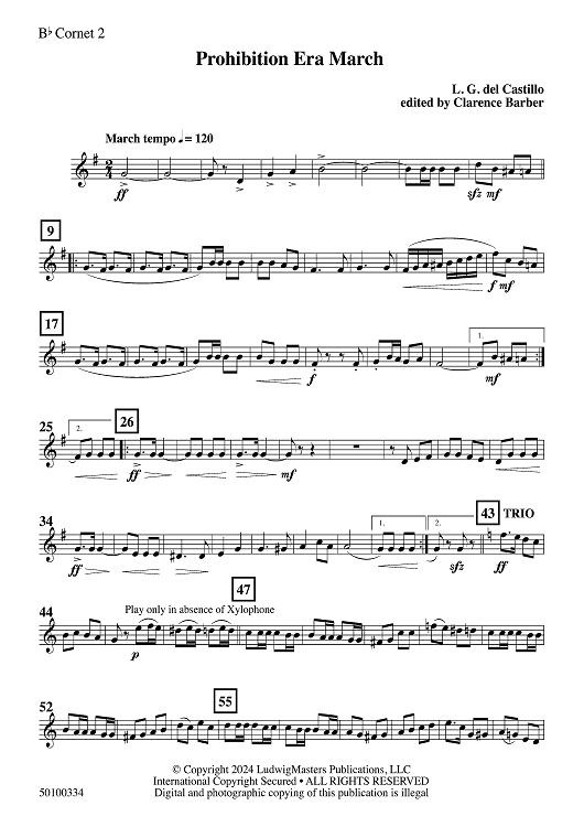 Digital Sheet Music for Prohibition Era March - Bb Cornet 2 by Clarence Barber, Lloyd Gould del Castillo scored for Concert Band; id:503852